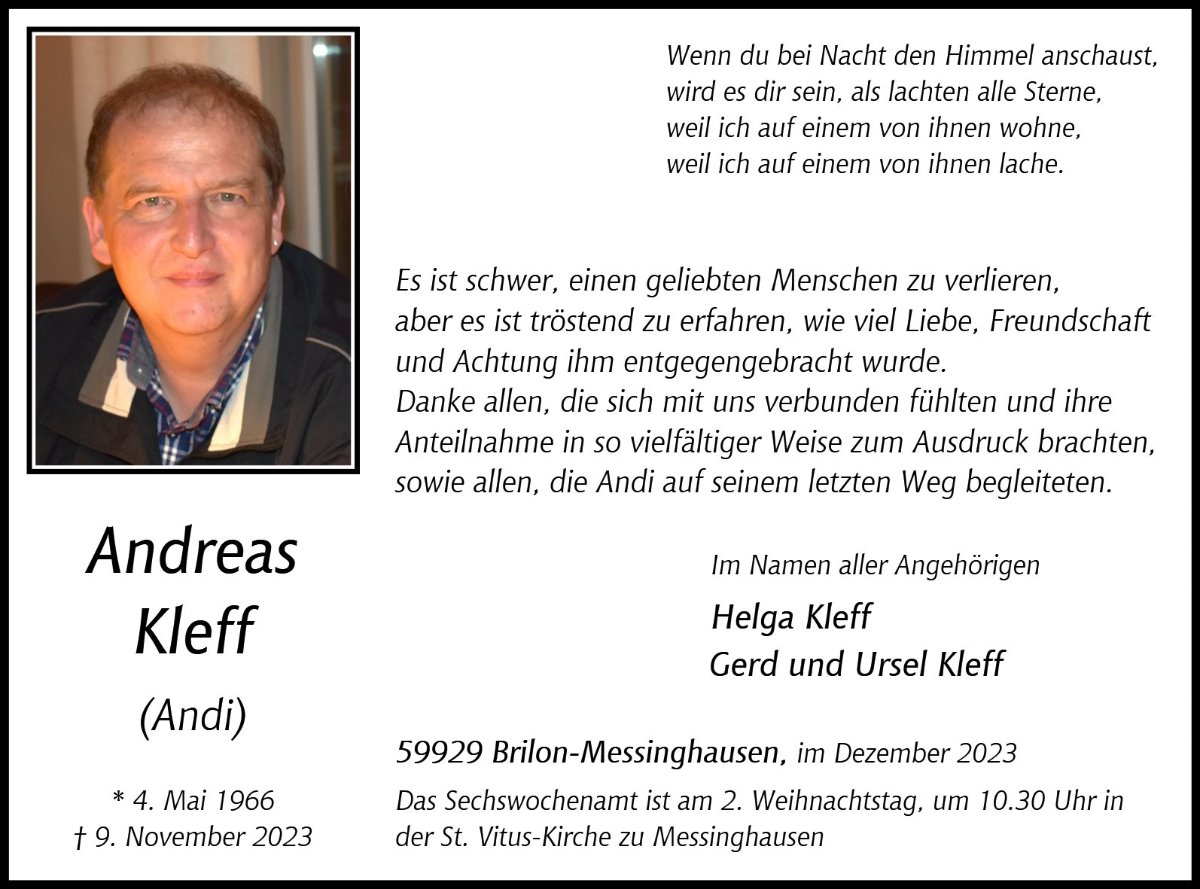 Andreas Kleffgestorben am 9. November 2023