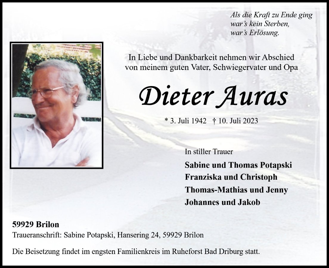 Dieter Aurasgestorben am 10. Juli 2023