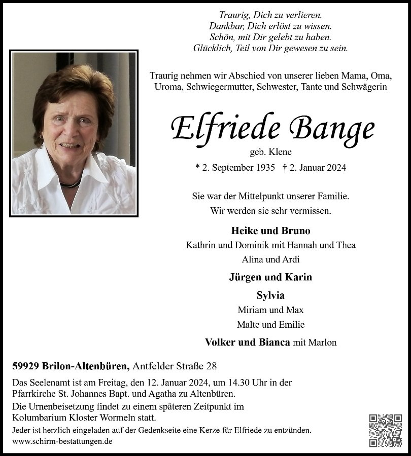 Elfriede Bangegestorben am 2. Januar 2024