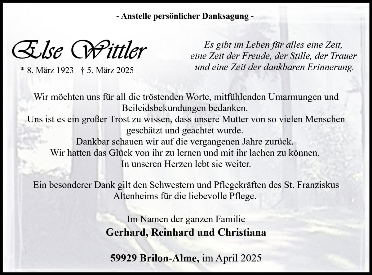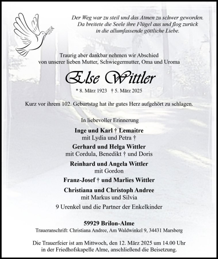 Else Wittlergestorben am 5. März 2025