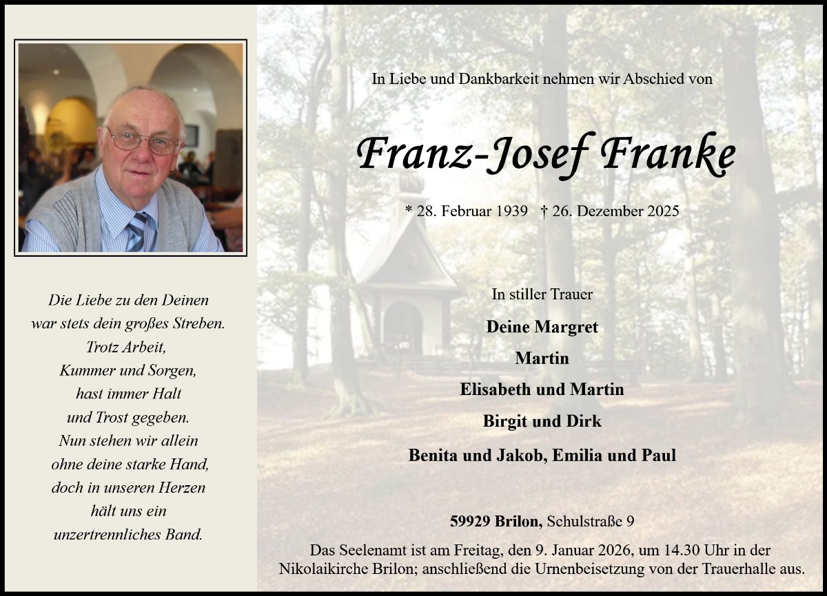 Franz-Josef Frankegestorben am 26. Dezember 2025