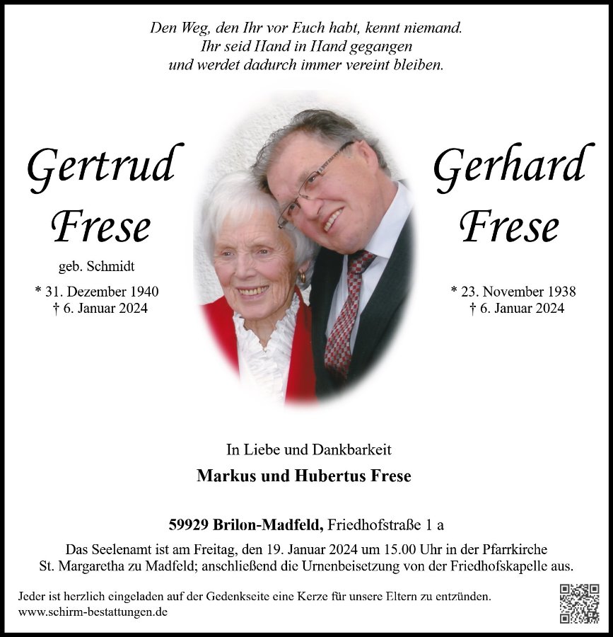 Traurig über den Tod von Trudi und Gerhard übermitteln wir unsere Aufrichtige Anteilnahme..Wir wünschen Ihnen den ewigen Frieden.