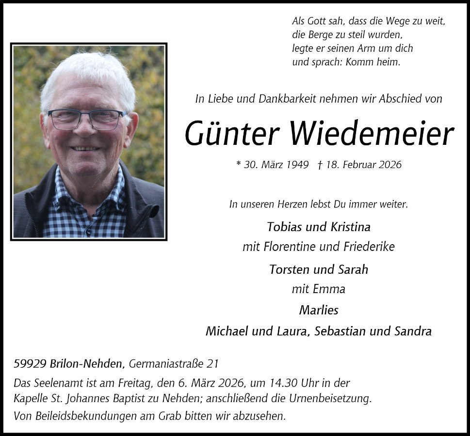 gestorben am 18. Februar 2026 in Arnsberg