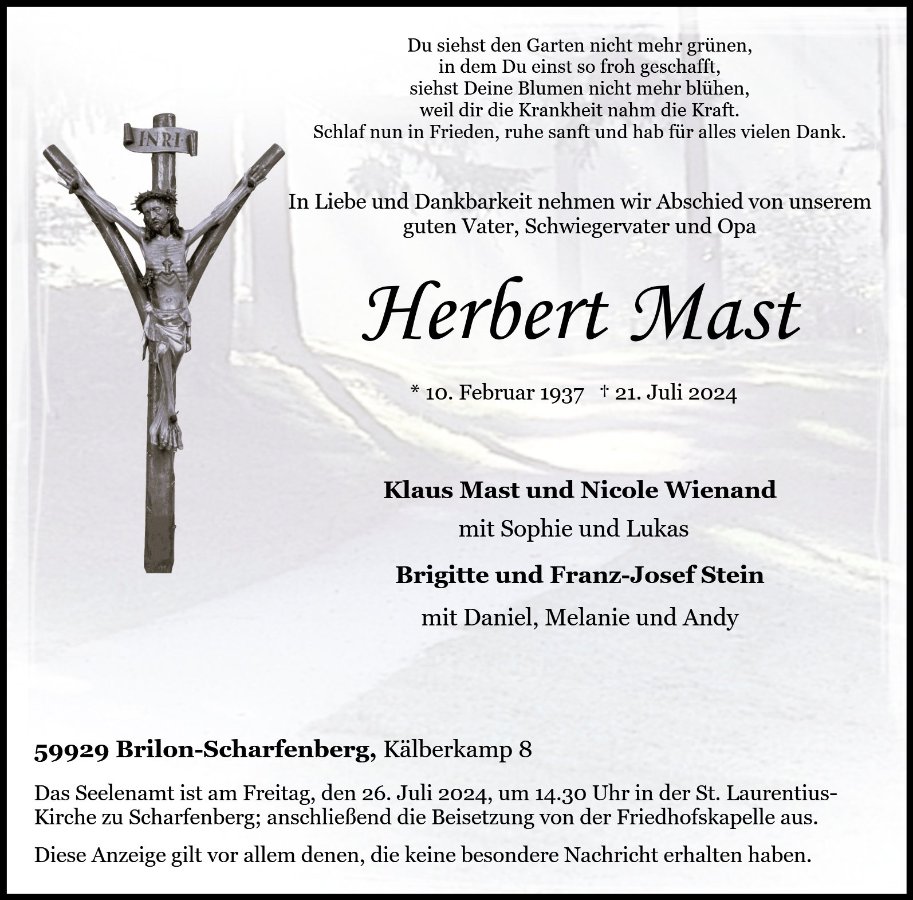 Herbert Mastgestorben am 21. Juli 2024