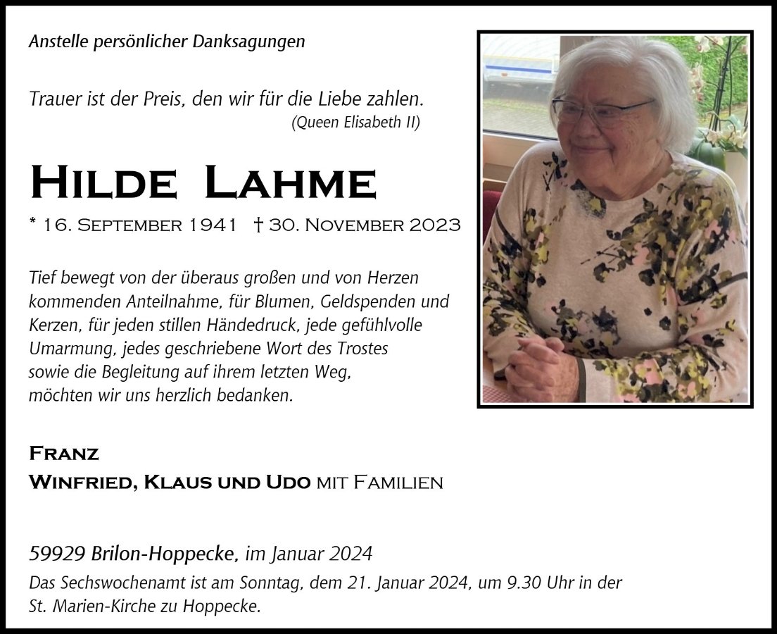 Hilde Lahmegestorben am 30. November 2023