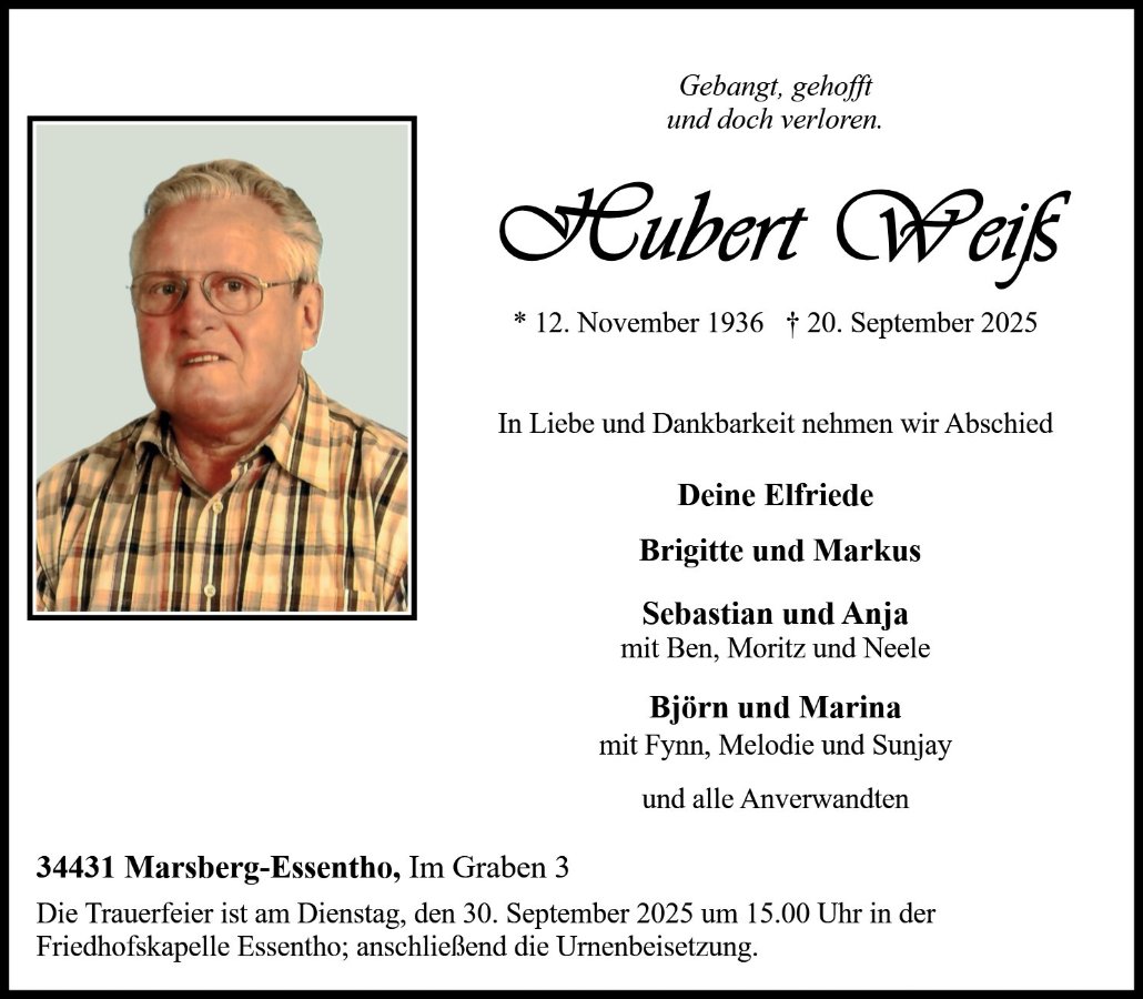 Hubert Weißgestorben am 20. September 2025