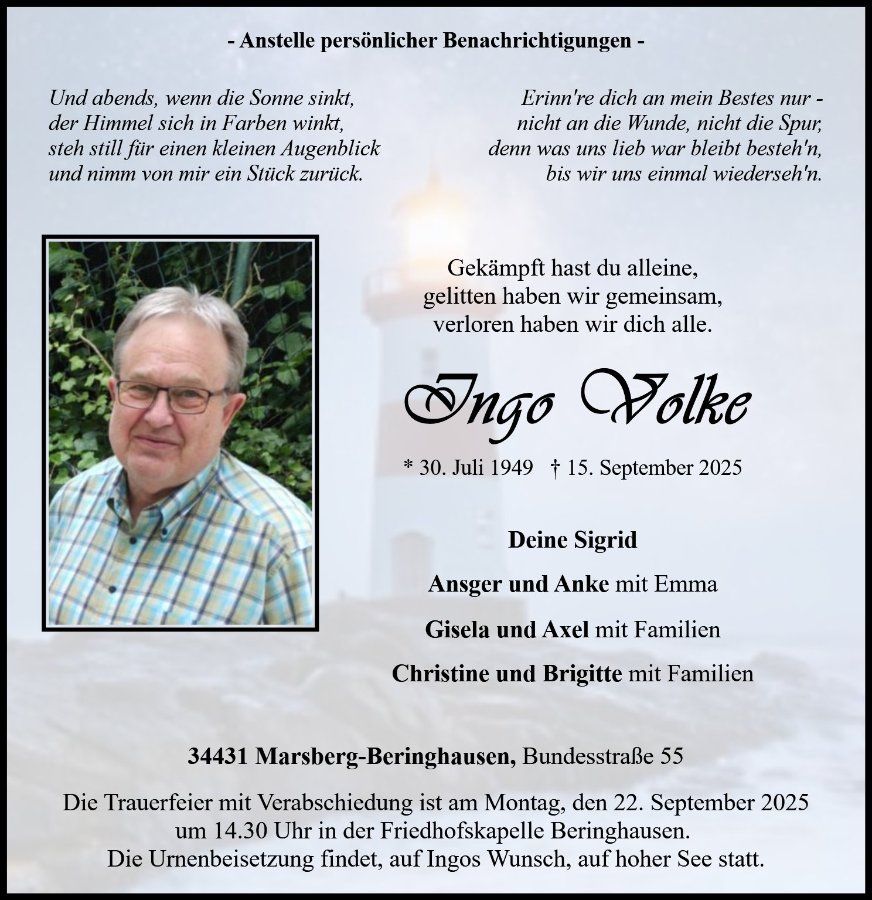 Ingo Volkegestorben am 15. September 2025