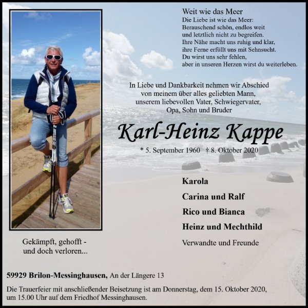 Karl Heinz Kappegestorben am 8. Oktober 2020