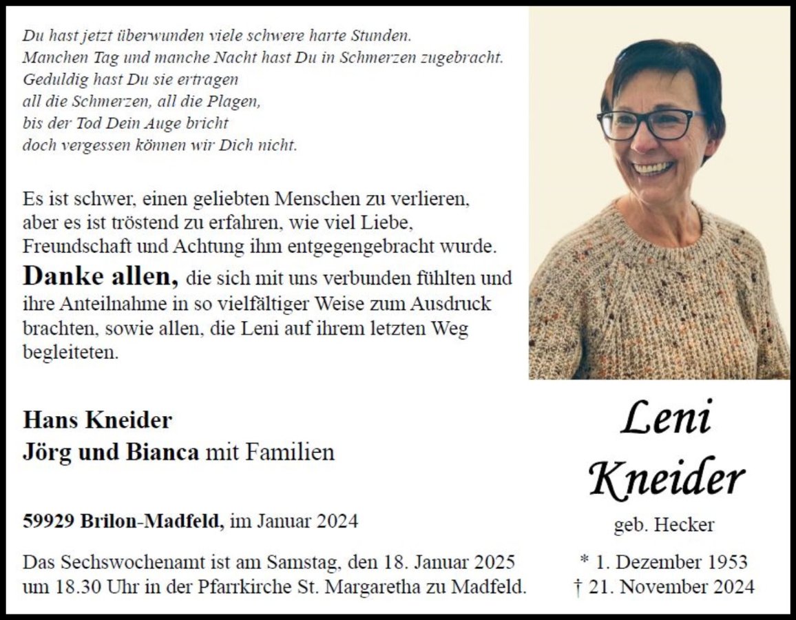 Leni Kneidergestorben am 21. November 2024