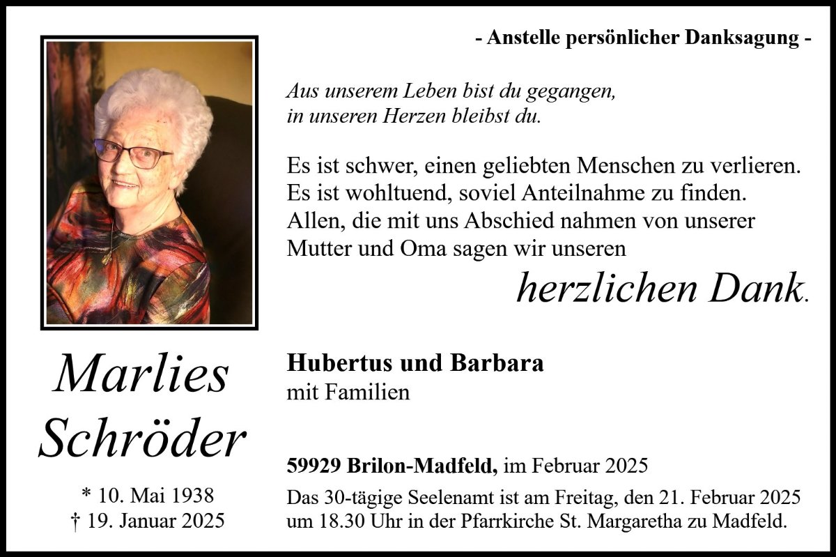 Marlies Schrödergestorben am 19. Januar 2025