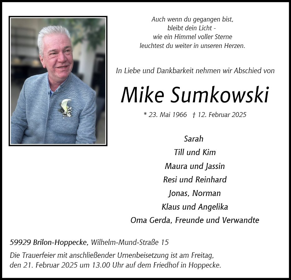 Mike Sumkowskigestorben am 12. Februar 2025
