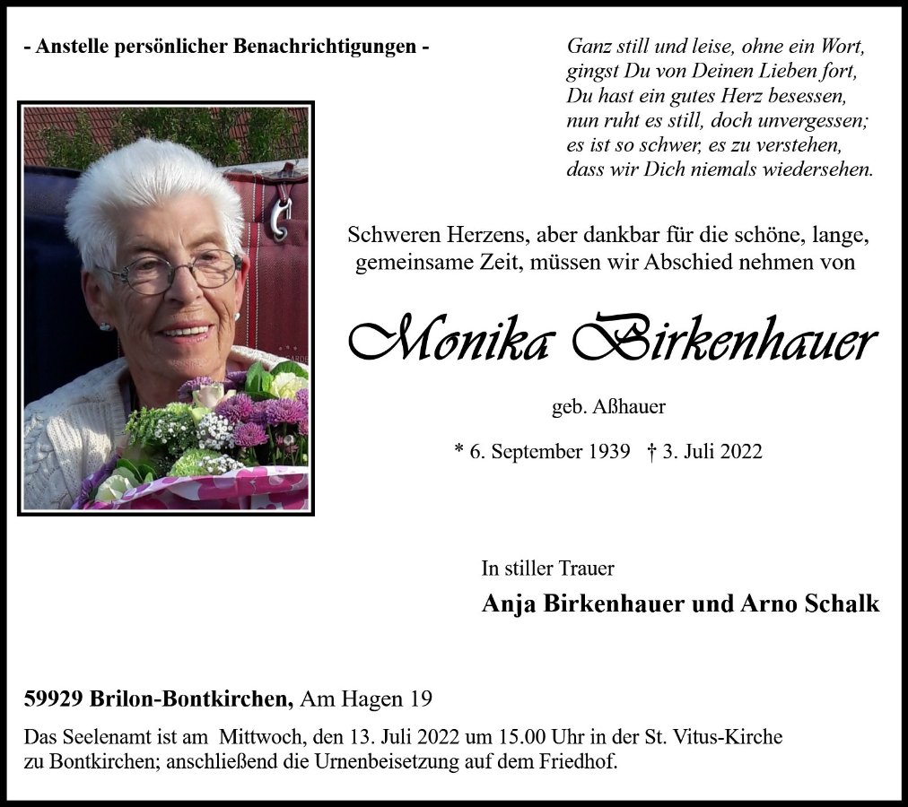 Monika Birkenhauergestorben am 3. Juli 2022