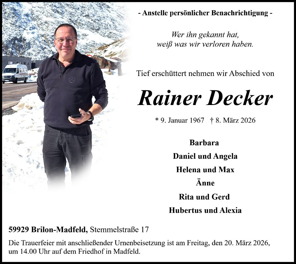 gestorben am 8. März 2026 in Brilon